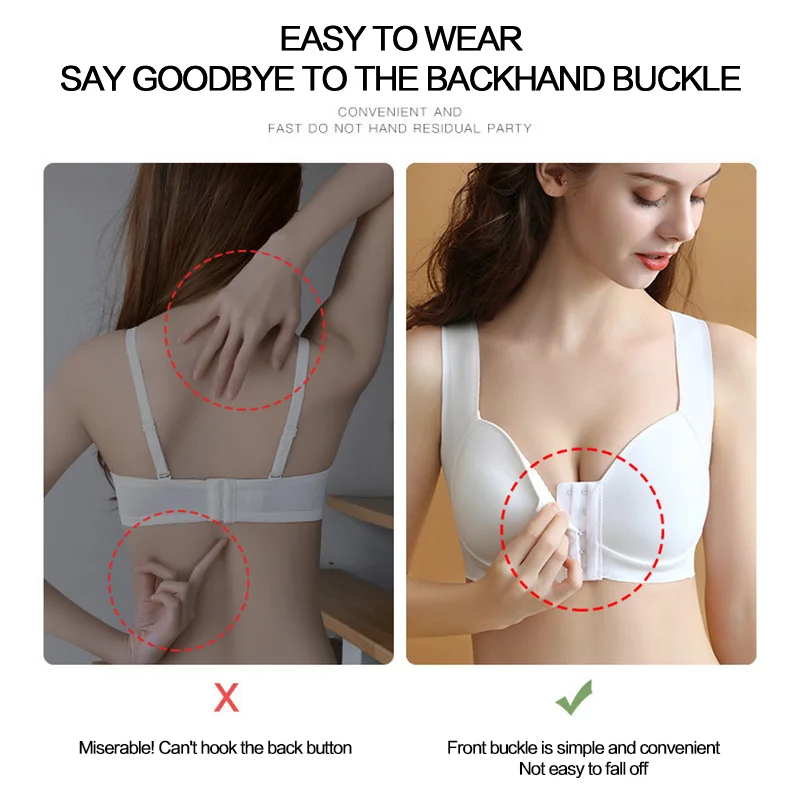 Front Bluckle Bra Instantly lifts and provides the greatest possible chest support with NO underwire, NO steel ring.