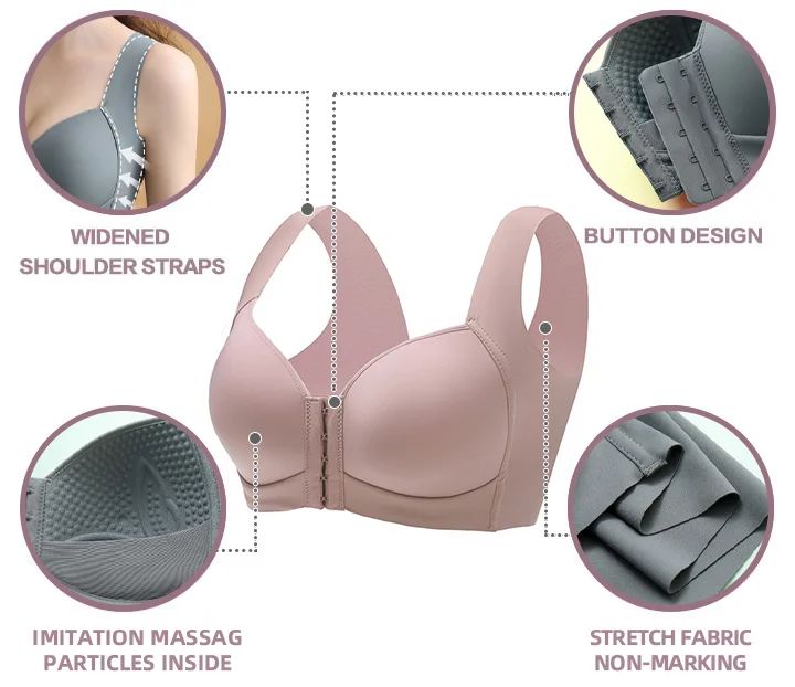 Front Buckle Bra is believed to push arm and sub-mammary fat back into your breasts, helping your muscles return to their proper position for a slimming effect. It also helps to improve blood circulation, and the lymphedema that is controlled by the elastic material used in the bra can also reduces fat gain and stops sagging of the breasts.
