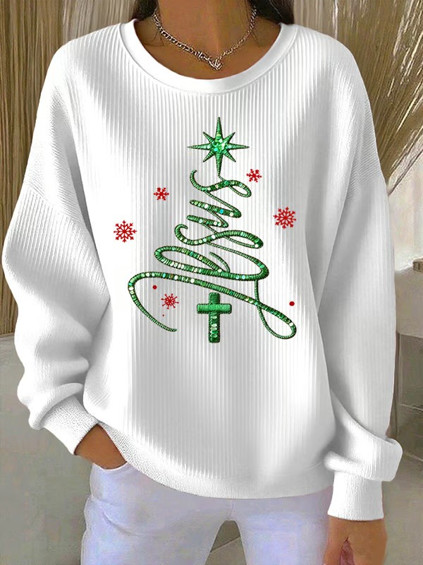Celebrate the holiday season in comfort and style with this Women’s Casual Faith Christmas Sweatshirt. Featuring a fun, mixed print design and jacquard weave details, this cozy sweatshirt is perfect for relaxed, festive outings. Its loose fit and soft terylene fabric ensure you stay comfortable while embracing the holiday spirit.