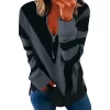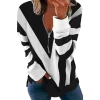 A bold color-block composition meets an abstract aesthetic, creating visual depth and a modern edge. The V-neckline is finished with a sleek zipper detail, introducing a refined contrast that elevates this piece beyond a basic sweatshirt and into a statement of casual sophistication.